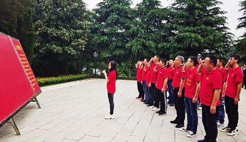 在钱壮飞烈士的墓碑前,全体党员肃立默哀,面向党旗重温入党誓词,“我志愿加入中国共产党……”一句句誓词铿锵有力,久久回荡在广场上空。随后,公司党员拾级而上,瞻仰钱壮飞烈士墓,敬献鲜花,缅怀革命先烈,表达无限哀思和崇高敬意。