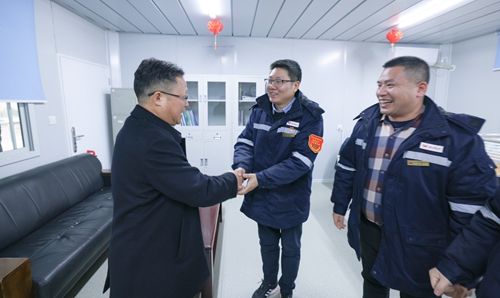 正月初一,在田家河园区项目指挥部,王大真通过视频向全集团干部职工拜年,并到项目现场和宜昌片区分子公司走访慰问坚守一线的干部职工。集团领导李刚、卞平官参加活动。