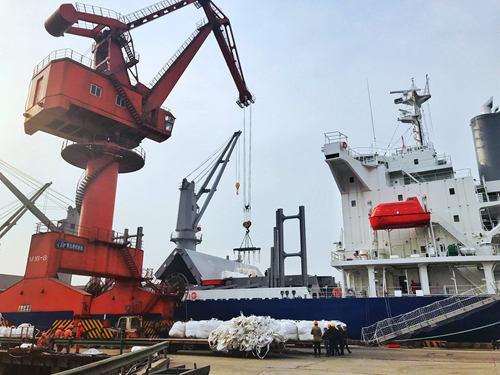3月15日,湖北宜化第一单澳肥(磷酸二铵)在镇江港顺利装船,出口澳大利亚。