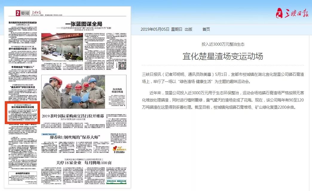 △《三峡日报》报道《宜化楚星渣场变运动场》