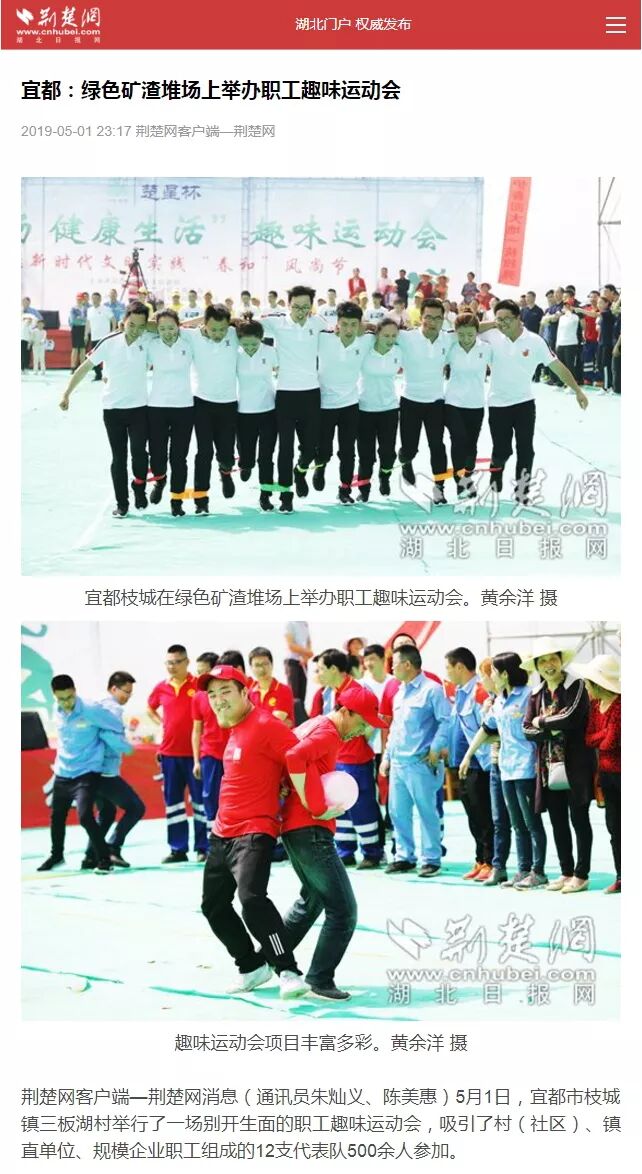 △荆楚网报道《宜都:绿色矿渣堆场上举办职工趣味运动会》