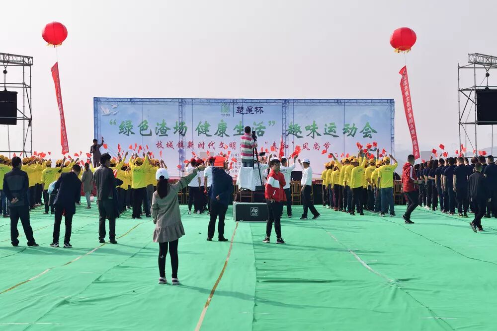 楚星公司投入近3000多万元用于生态环保整治,运动会场地磷石膏渣场严格按照无害化堆放处理磷渣,同时进行覆绿指数,人们印象中臭气熏天的渣场变成了花海。