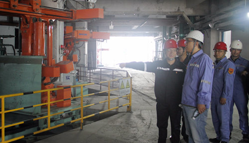 10月1日,集团党委委员、总会计师张涛来到内蒙宜化,他深入烧碱15万吨电解厂房、转化中控、6万吨电解厂房、电石炉集控中心、电石炉机器人现场及烧碱、PVC技改工程等现场,详细询问电石炉机器人运行情况和新技改项目建设情况等。