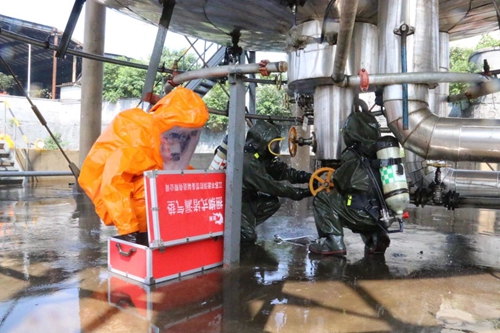 6月8日,孝感市消防救援支队和应城市政府在双环公司开展危险化学品泄漏事故跨区域实战演练。