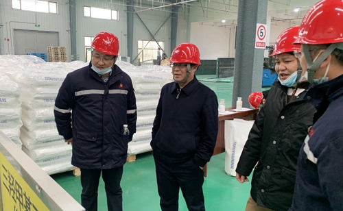 在新材料公司,王大真来到袋库包装线、TMP主装置等现场察看,了解公司生产经营相关情况。他强调,要积极发挥产业委员会作用,组织精细化工相关技术人才现场蹲点,认真开展工艺、质量攻关。要解放思想,加强学习交流,善于借用外脑,多走出去学习同行业先进技术。销售人员要多深入现场,熟悉掌握产品性能。要以诚信为本,用过硬的产品质量,捍卫自身品牌,维护客户利益。