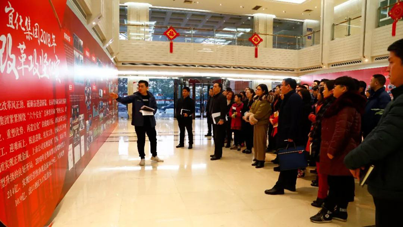 会议结束后,与会人员集体前往总部一楼大厅参观“宜化集团2018年改革攻坚纪实及先锋谱” 图片展。