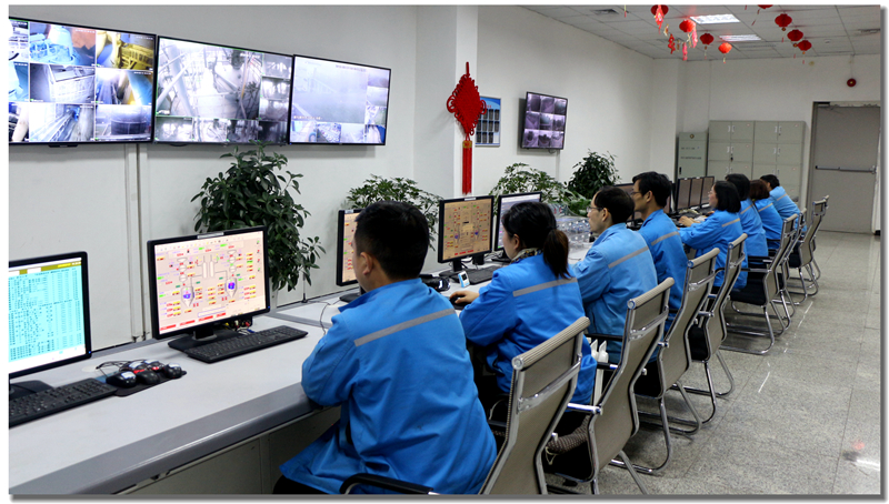 2月10日,宜昌宜化太平洋热电有限公司氯碱分厂VCM操作室内,技术人员正在对各项生产数据进行实时监控。