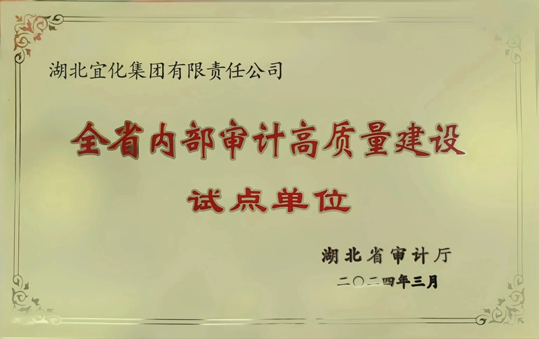 3月28日,湖北省审计厅举办内部审计高质量建设试点单位授牌仪式,宜化集团荣获“全省内部审计高质量建设试点单位”称号,成为宜昌市唯一获此荣誉的单位。该试点单位评选的目的是,树立全省内部审计建设标杆,更好发挥典型引领、辐射带动作用。