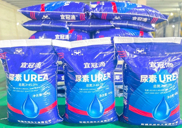 本次生产的宜冠滴尿素,专门针对新疆区域土壤特性研发,具有适应盐碱地,有效调控肥域酸碱性,降低尿素氨挥发以及能够抗硬水,使氮钙络合同吸收溶解沉淀更通畅,达到强根系、促吸收的特点,适用于滴灌、喷灌等多种施肥方式。