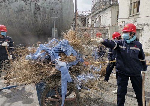 公司全体党员、职能部室全员及事业部相关人员共90多人齐聚生产现场,按照现场实际划分三大卫生区域,对厂区环境进行大整治。大家组织有序分工明确,全副武装做好防护,拿扫把、扛铁锹、拉推车,重点对厂区道路、雨水沟、废旧物资进行重点清理,累计清扫两条厂区主干道、四条辅道,五处卫生死角,50多车生活垃圾。
