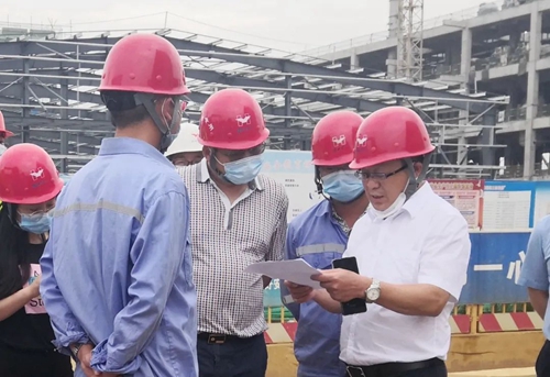 在TMP项目施工现场,王大真详细询问工程建设进度,对现场布局、道路交通等进行具体指导。他强调,要加快推进工程建设,在保证安全和质量的前提下,加班加点施工,歇人不歇设备,力争项目尽早完工投用。要迅速出台开车方案,仔细研讨分析,提前做好开车准备,确保一次性开车成功。要尽快完善配套设施,调动全集团资源协调处理,严格按照既定时间节点完成。要不断加强沟通衔接,积极主动到园区协调,认真做好工作落实。
