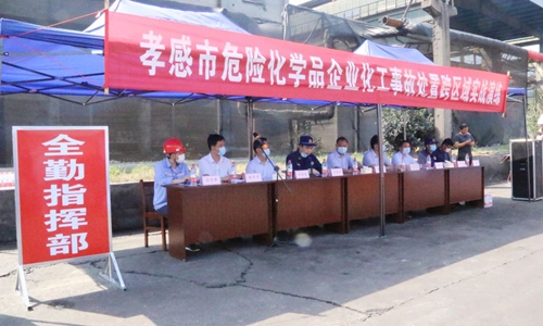 6月8日,孝感市消防救援支队和应城市政府在双环公司开展危险化学品泄漏事故跨区域实战演练。