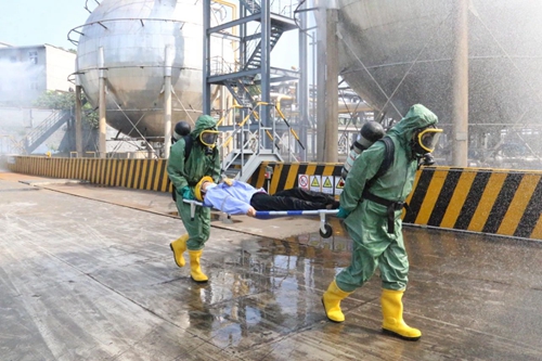 此次演练历时近1个小时,双环公司应急救援队8名队员全程参与,第一时间对中毒职工进行紧急救治,利用消防水炮大面积稀释泄漏点,并与各方救援队紧密协作,圆满完成演练任务。这次高规格的应急演练,进一步提升了公司救援队的应急处置能力及沟通协作能力,验证了公司应急预案的可行性与操作性,增强了公司广大干部职工的安全意识。