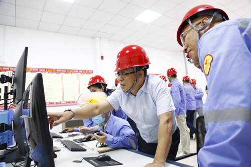 王大真一行来到氟化铝项目中控室、煅烧窑、二氧化硅仓库及成品堆存现场察看,详细了解开车流程、安全生产、投入运行、产品质量情况及高温作业存在的困难、采取的措施等,并同项目部成员亲切交流,同合作方负责人一起协商试生产过程中的难题和后续市场布局相关工作。随后组织召开座谈会,听取项目建设情况汇报,进行责任制兑现颁奖。