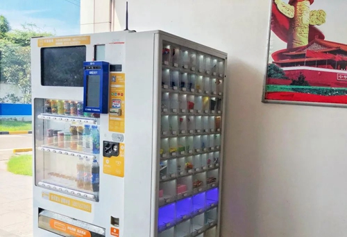 各分厂中控室门口新增的饮料自助售卖机,既美观又实用。大家纷纷表示,再也不用在炎热的天气下走很远的路去买饮料了,工作生活上都便利了很多。