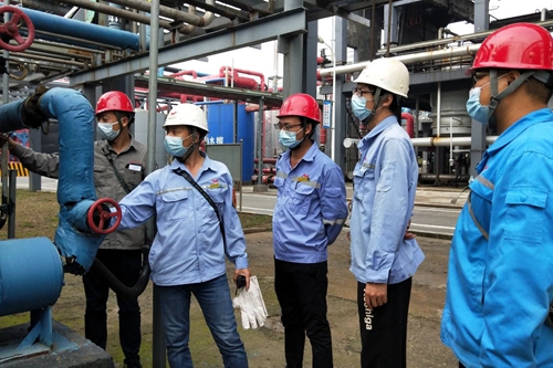 安全督导消除隐患。安全是企业的生命,节假日期间安全生产尤其重要。各跟班管理人员每天在班前会上再三叮咛,嘱咐班员认真做好设备巡检和工艺指标控制等工作。在氯碱分厂,作为跟班人员的设备技术员周龙、安全员王波,带着当班班长和班员对重大危险源进行巡检,排查隐患,保障安全环保生产平稳有序。班中,跟班人员对各班员应知应会知识、消气防设施使用等情况进行抽查,帮助班员查漏补缺,熟练掌握相关业务知识和技能。同时,模拟重大危险源异情发生,组织班员开展应急演练,对联系汇报、警戒疏散人员、封锁现场、工艺处置、消防救援等环节进行严格把关,查找不足及时改进,确保班组对突发异情的处置快速高效。