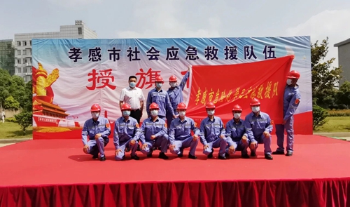 双环公司应急救援队被授予“孝感市危险化学品应急救援队”旗帜