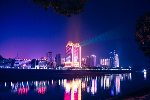 夜幕降临 华灯初上 屹立江边的宜化双子座亮起“新装” 瞬间光芒四射 流光溢彩 这一刻 她是夜空中最“靓”的楼