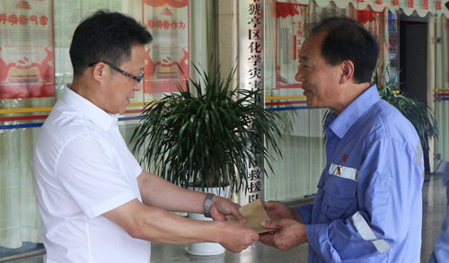 6月24日,在中国共产党建党98周年来临之际,集团董事长、总经理王大真深入宜都园区、股份公司生产现场,走访慰问优秀党员、年轻党员及困难党员代表,为他们送去集团党委的亲切关怀和节日祝福。